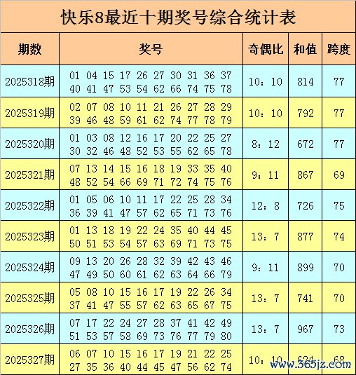 福彩慷慨8第2025327期开奖回来奖号:06 07 10 15 16 17 19 21 22 25 27 35 36 40 44 45 47 56 62 74,其中奖号奇偶比为10:10,和值为624,跨度为68。